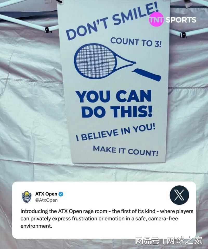 正在进行的WTA250奥斯汀站今年设置了一项前所未有的设施——“愤怒屋”(Rage Room)。赛事官方宣布,这间特殊的房间将允许球员在“完全保密、远离摄影机”的环境中,安全地宣泄挫折与负面情绪 。